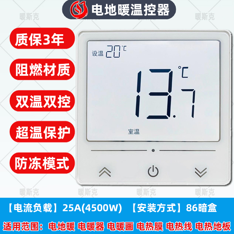 NSK-617【電地暖】大屏觸摸三鍵(暗裝)25A
